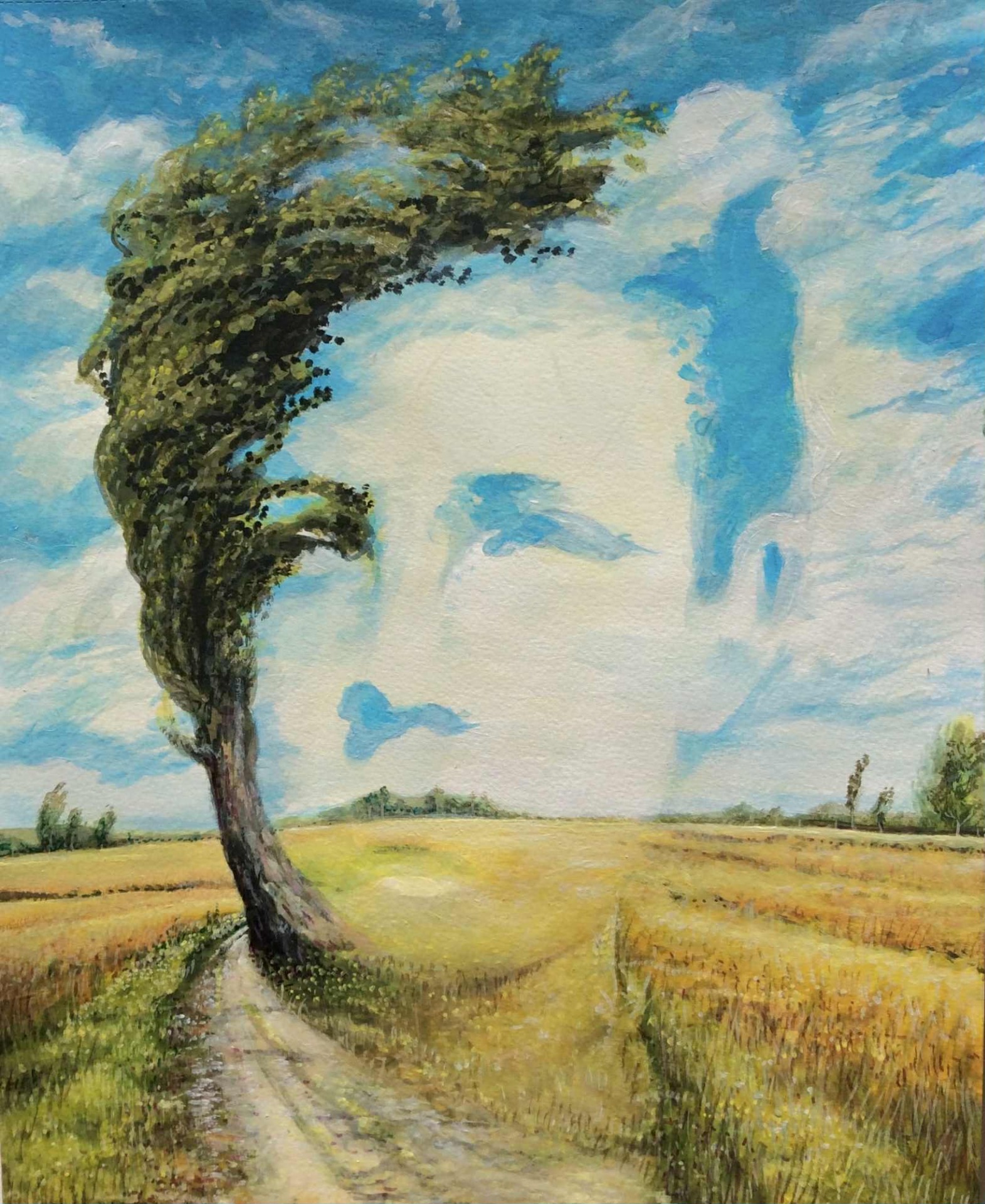 En 2022, Pierre Emilien GRENIER vient rencontrer Rimbaud à Charleville. Après un recueillement émouvant sur sa tombe, il visite avec enthousiasme le Musée où il découvre sa force d'écriture, citée sur les murs, musée exceptionnel où l'on perçoit la sensibilité du poète si bien exprimée par les œuvres présentées. Sa collection personnelle le bouleverse... la place Ducale est un écrin où il imagine son tableau, Rimbaud protecteur de Charleville...(EDV)